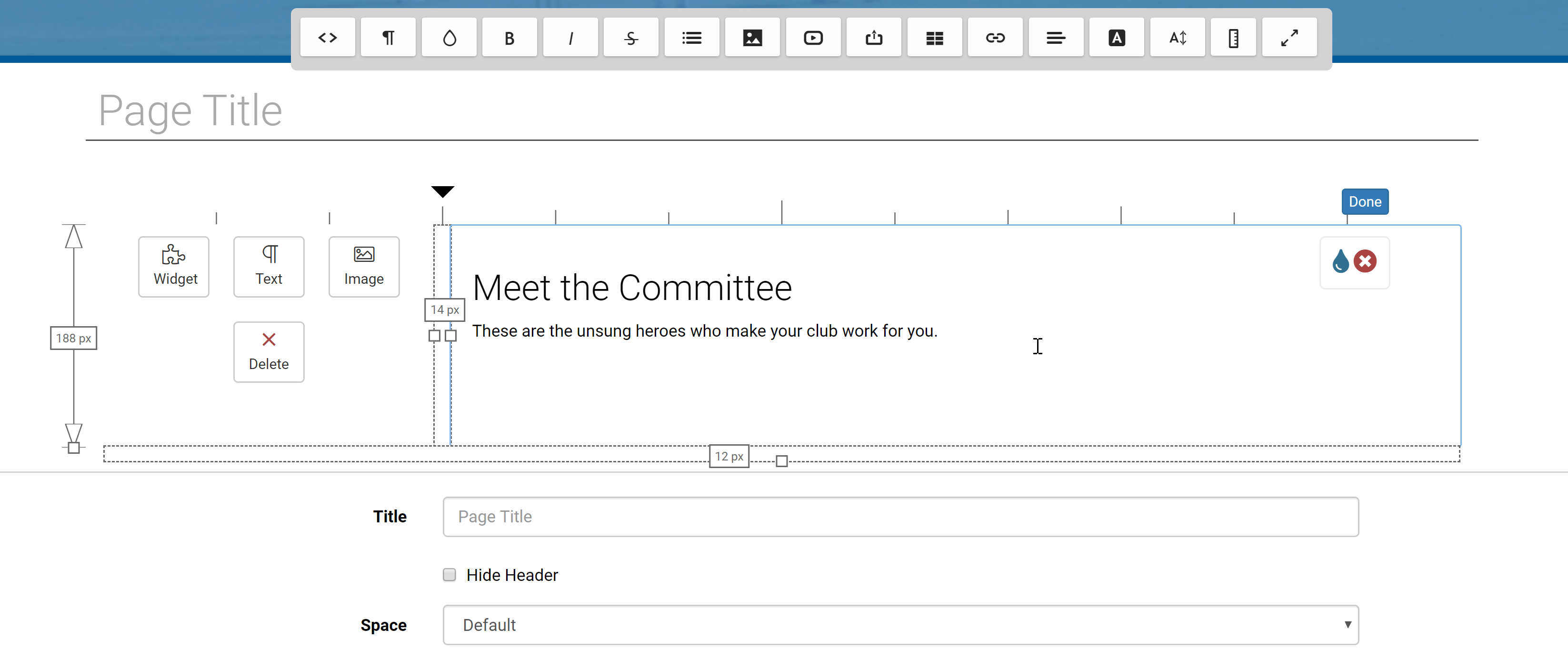 No problem. The CMS Add-On allows you to create any number of pages of content. CMS pages can be constructed as a mix of text, images, video, attachments, and data-driven widgets. The myClubhouse CMS is divided into Spaces where each Space can contain multiple pages. This allows you to organise your content and apply different Entitlements to each Space.