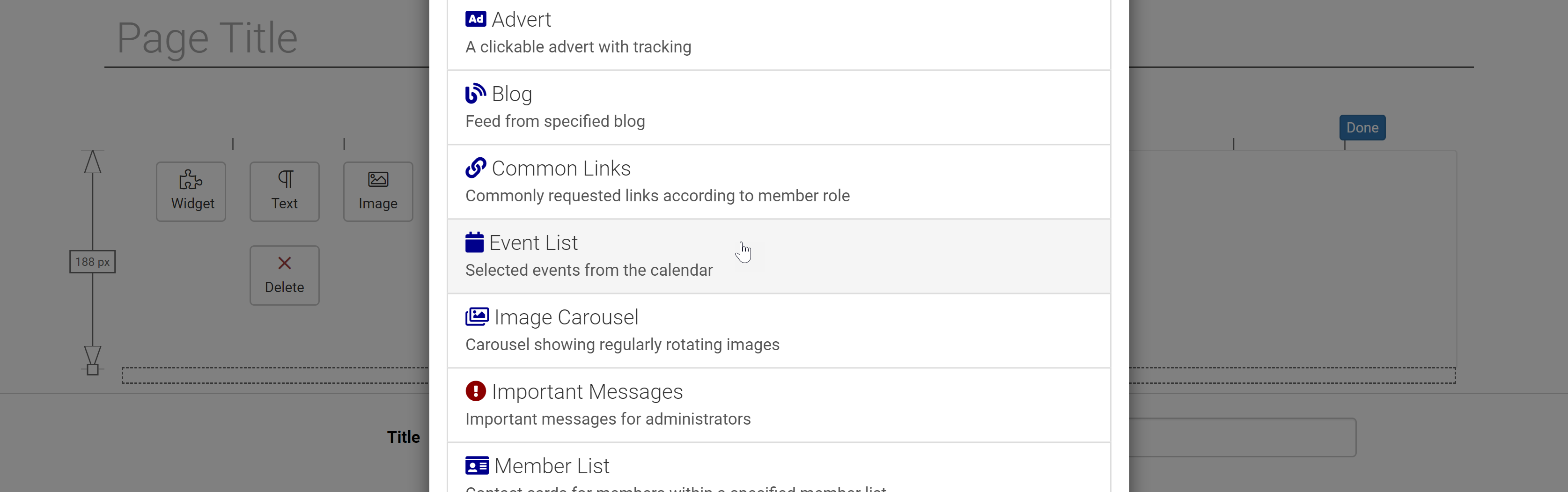 myClubhouse has a number of data driven widgets which can be placed anywhere on the page.