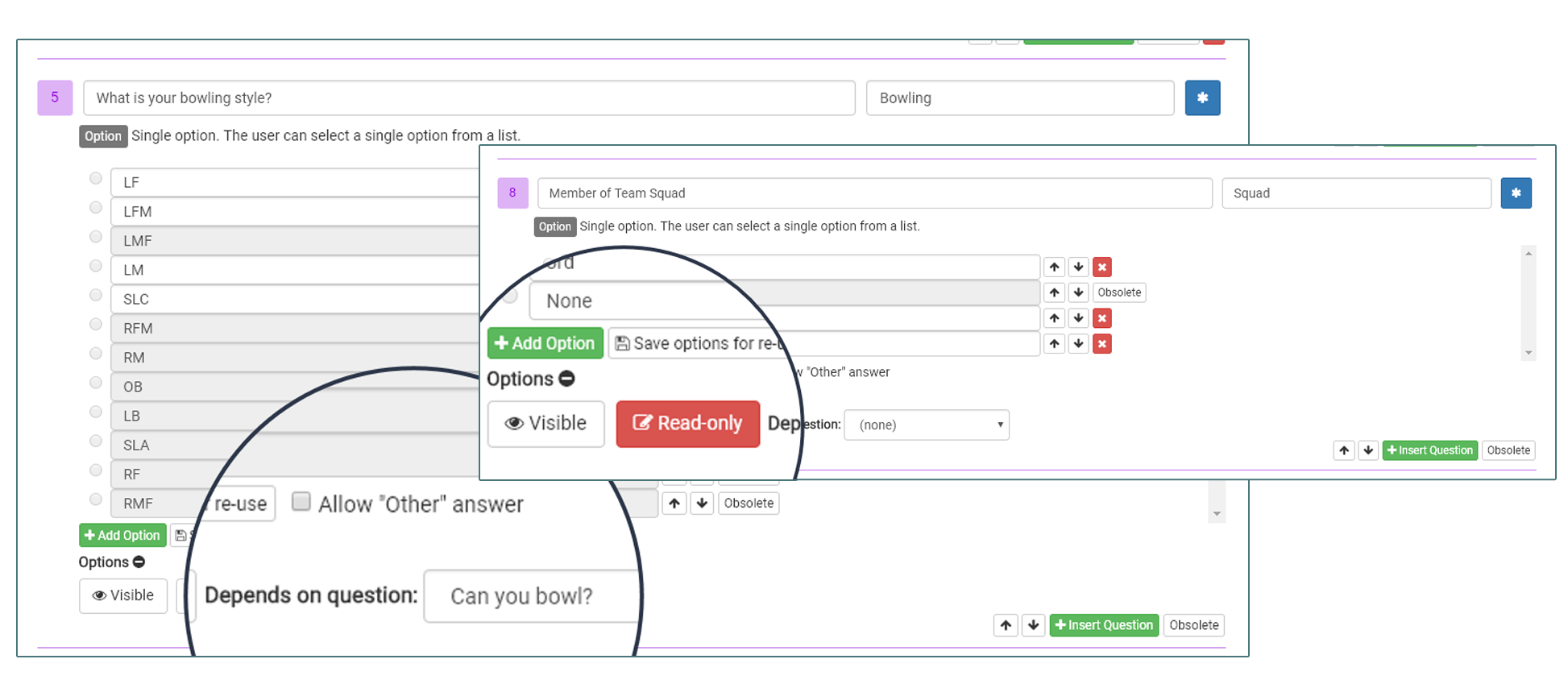 Each question can have one of the following visibilities: